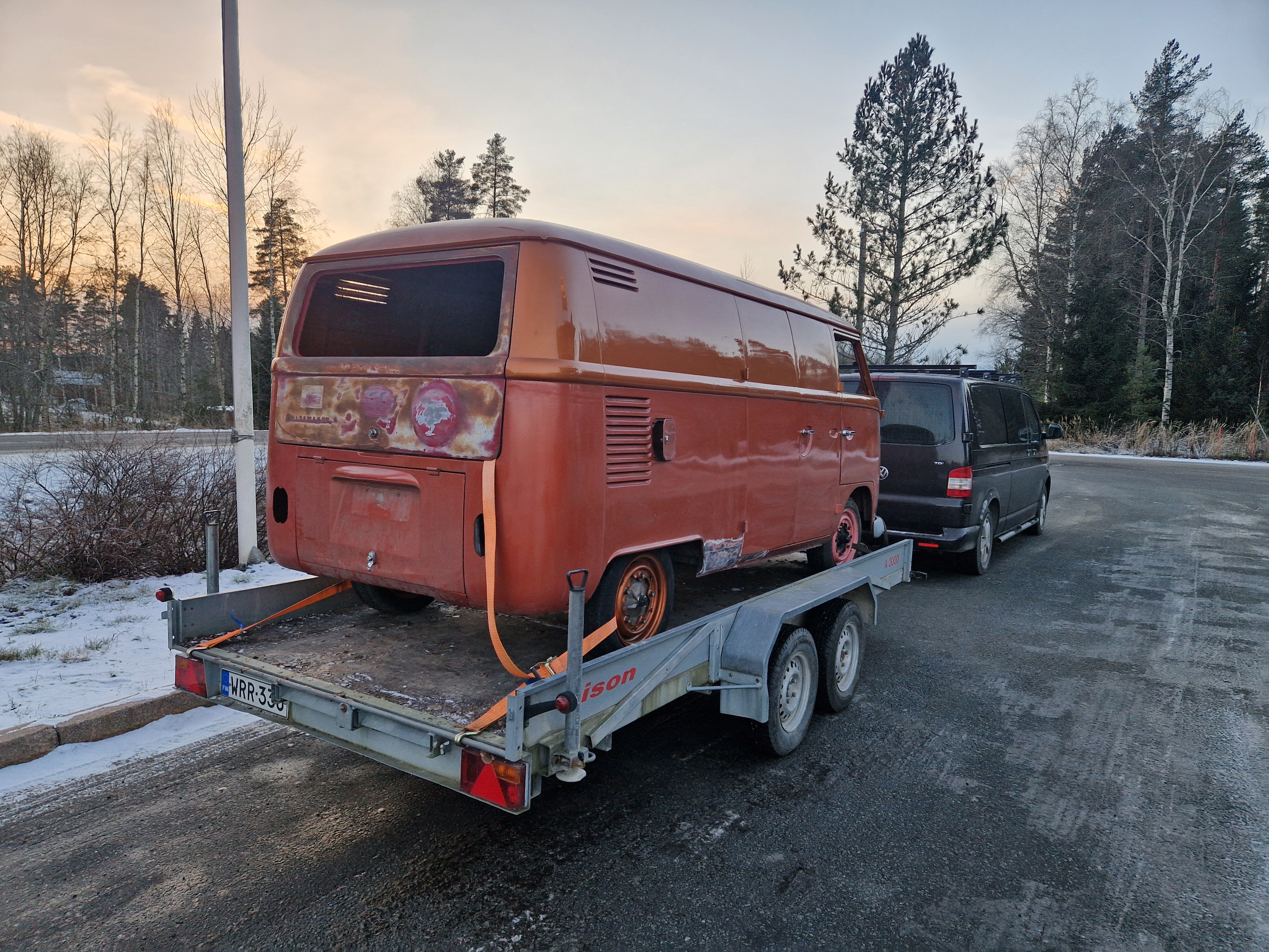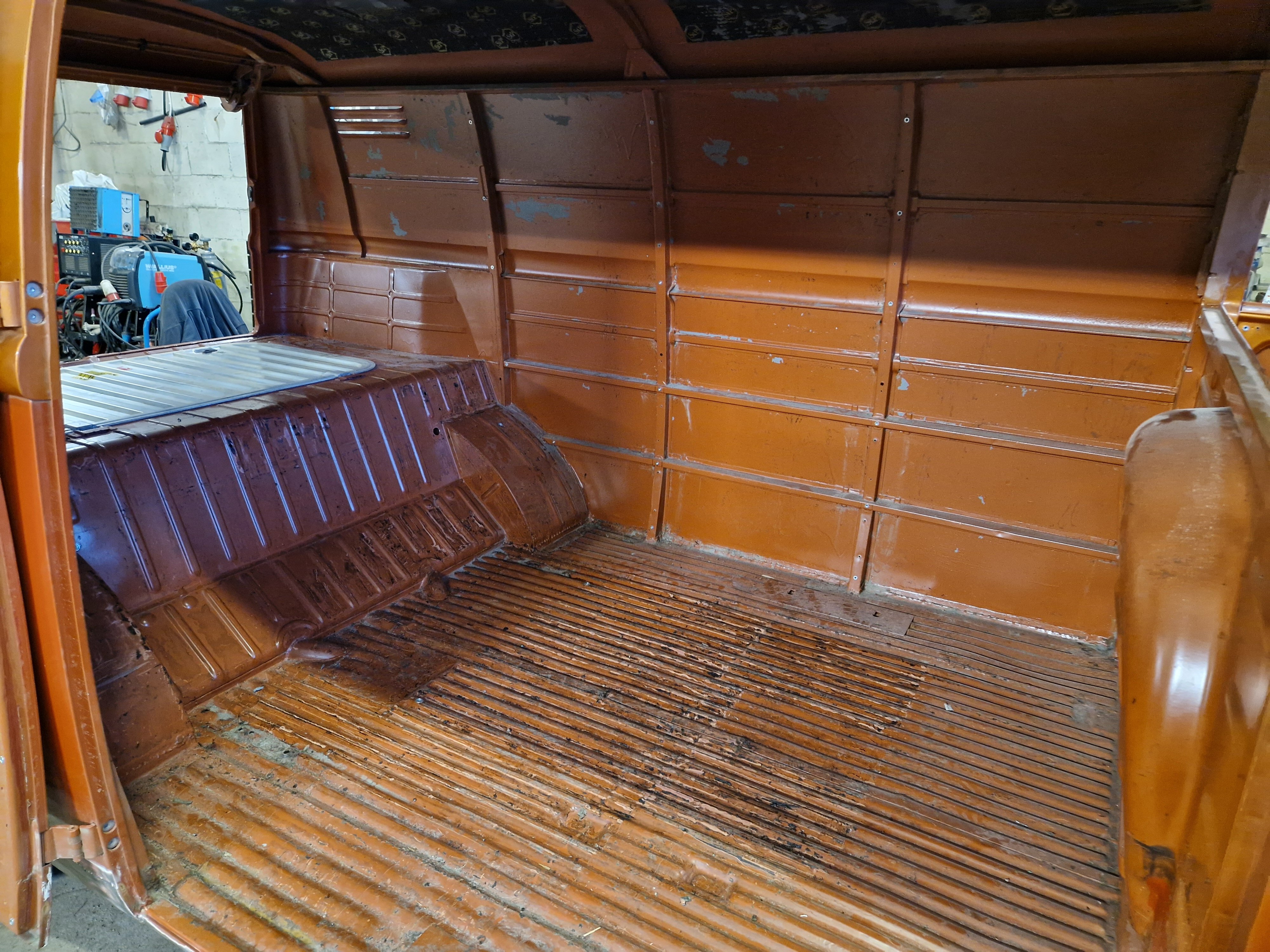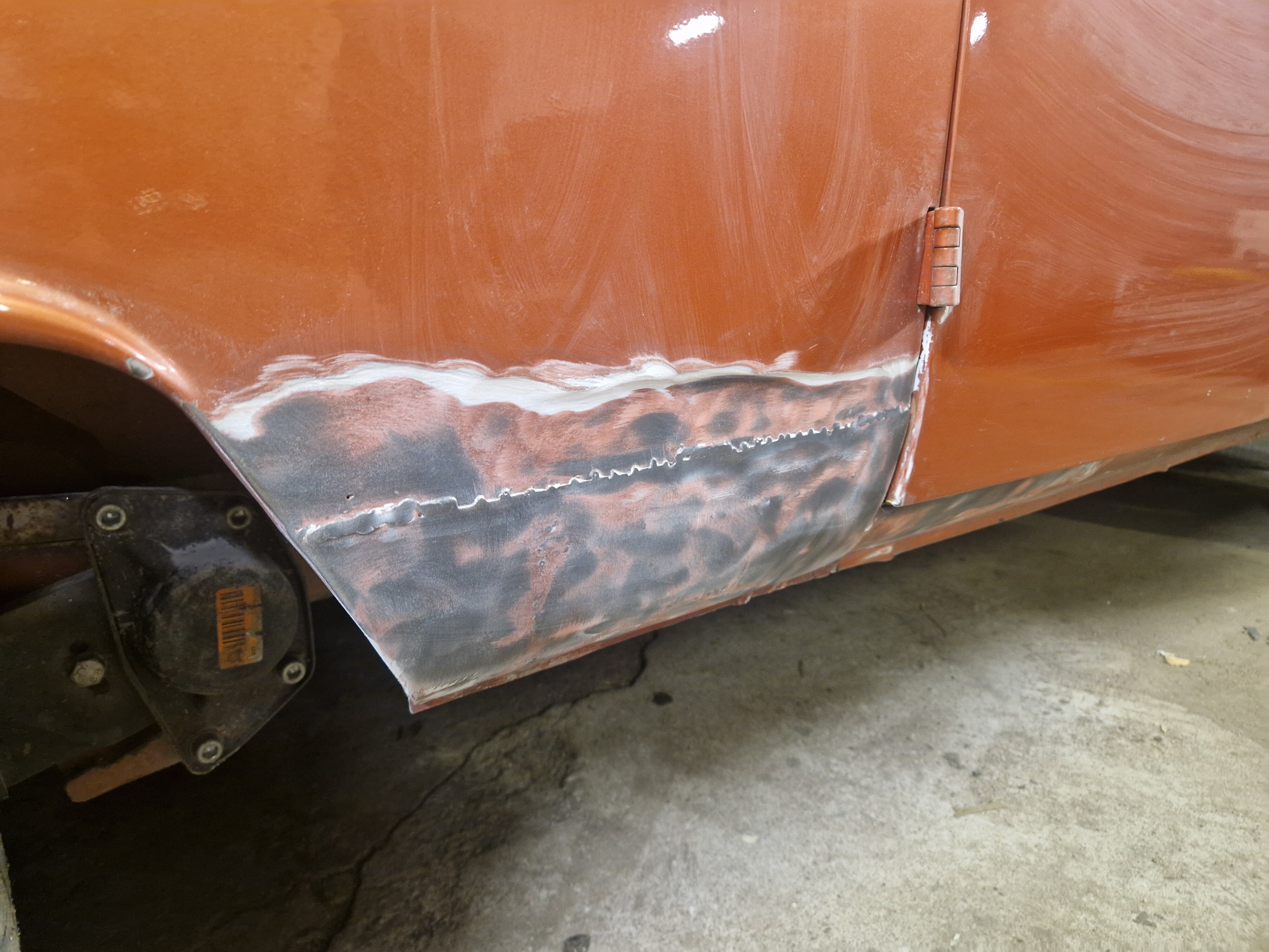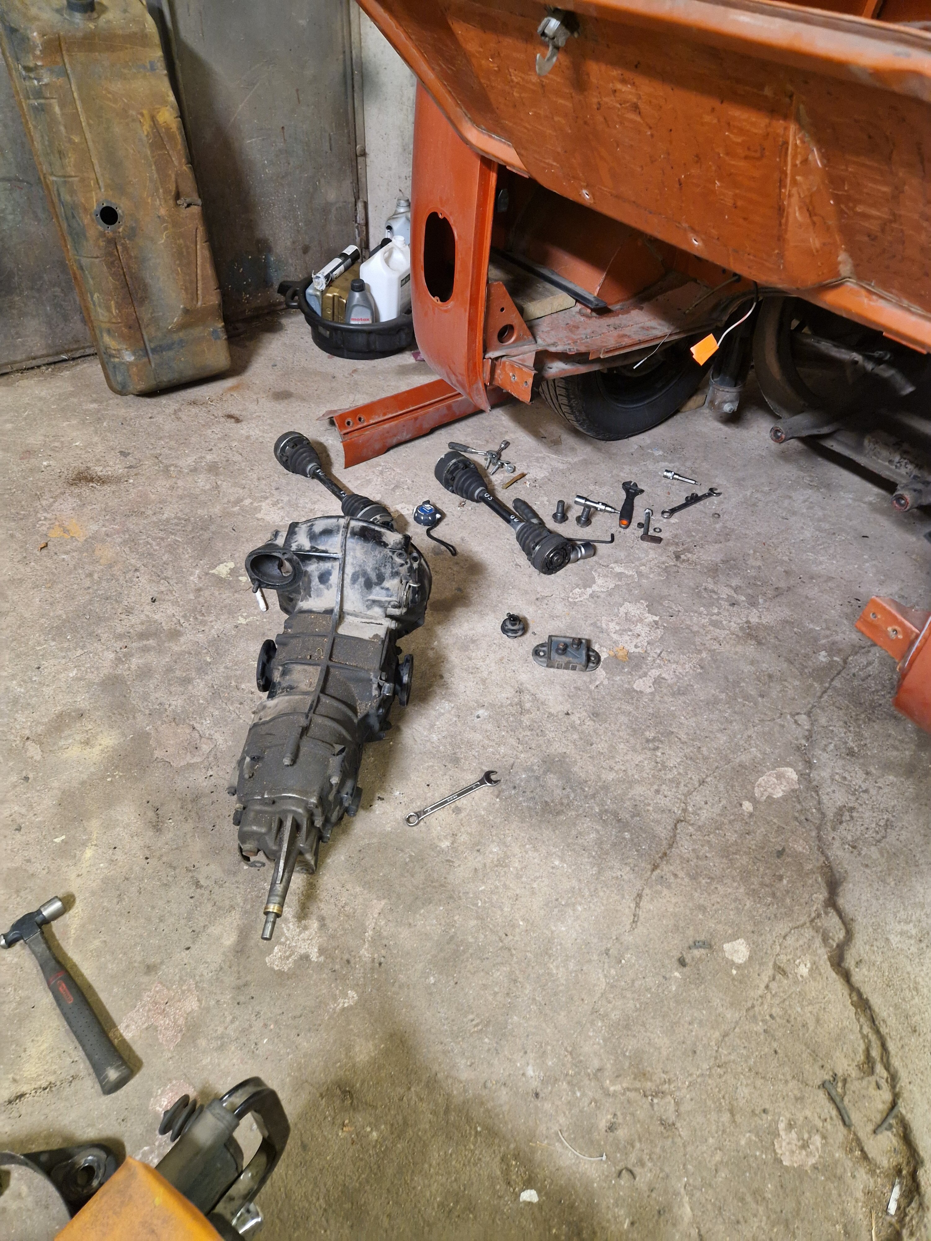 2. NONIIN, nyt on päästy jo tähän talveen ja miltei nykytilanteeseen. 2025 elokuussa käytiin ajelemassa saariston rengastie ja siitähän sitten tulikin KALLIS reissu. Hieman koleahkossa säässä istuttiin autossa leirintäalueella meren rannalla, jossa vaimo sitten tokaisi, että "Tähän pitää saada ikkunat". Vielä kun pari kanssa harrastajaa sai vaimon vakuutettua läpikäveltävän ohjaamon autuudesta, niin konkurssi häämötti nurkan takana. Itseä oli alkanut hieman nyppiä joka talvinen auton purkaminen ja auton keskeneräisyys, niin tämän talven ohjelmaan otettiin sitten laajemmat peltityöt ja auton maalaus (vihdoinkin, voisi joku todeta..). Tallikausi alkoi siis totuttuun tapaan purkamisella ja äänieristebitumien poistamisella, joita autossa olikin miltei joka paikassa. Helmojen korjauksen laatu jo arvaattiinkin aiemmin tehtyjen takanurkkien avauksen perusteella, mutta silti kitin määrä oli hieman yllätys. Korjauspellit oli lisäksi hitsattu päällekkäin vanhojen peltien kanssa, ja tasoitettu kitillä hitsisaumoja siistimättä. Ja tämä siis ihan maksettuna työnä aikoinaan teetetty. No, onpahan peltisepälle jotain tekemistä... Kone ja vaihdelaatikko irti, ja kun laatikko oli lattialla niin se oli näppärä lähettää tarkistettavaksi, eikä turhaan. Laatikkomies oli hieman jopa ihmeissään että vaihteistolla oli kuitenkin päästy eteenpäin. No, olihan se jo hieman pitänyt ääntä varsinkin moottorijarrutuksessa, mutta nyt on uudet rojut sisällä niin uskaltaa taas tulevaisuudessakin Suomen ulkopuolelle. Peltiosia oli hommattu BBT:ltä valmiiksi jo jonkinmoinen kasa, ja kun peltiseppä ilmoitti marraskuussa että nyt on pajalla juniksen mentävä aukko, niin suunta kohti Vaskiota. Sitten alkoikin tapahtua ns. isolla pensselillä ja reilut pari viikkoa auto vietti peltisepän hellässä huomassa. Vanhat kylkipalat pois, ja uudet korjauspalat paikalleen. Myös pariovet päädyttiin vaihtamaan kokonaan, eikä alettu rei'ittämään ehjiä umpparin ovia. Ei ne BBT:n peltiosatkaan suoraan istu, vaikka peltiseppä niitä ihan hyviksi kehuikin, mutta matimies on amatimies tässäkin asiassa, ja se on syy miksi en itse tee peltitöitä... Etummainen pariovi jouduttiin ottamaan pykälää vanhempi, kun uudempaa ei ollut saatavilla, joten siihen piti askarrella etuoven kahvaa varten kolo. Myös oikeanpuolen doglegi oli joskus korvattu brassi-doglegillä, ja mysötty paikoilleen ilmeisesti pajavasralla, niin myös se oli vaihtolistalla. Samassa kuvassa näkyy oven takakulma, jota oli joskus korjattu ja pintapelti oli kuopalla ja löysä, ja korjattu kitillä. Pelti oiottiin ja kiristettiin niin ehkä hieman vähemmän kittiä riittää. Sitten helmojen kimppuun.. Ensin kitit lattialle ja oikeanpuoleisen helmanpätkän peltiseppä päätyi vaihtamaan, mutta vasen oli sen verran tiukasti kiinni ja vain saumastaan huono, että siitä korjattiin vain liitoskohta. Ja sitten väliseinän kimppuun, jotta pääsee kulkemaan ohjaamosta suoraan jääkaapille, kulkematta lähtöruudun kautta.. Kuvassa näkyy myös ähtäröity kojelauta, kun en ole koskaan tuolle CD-levy telineelle juniksessa keksinyt mitään järkevää funkiota.. Syksyllä kun projektia aloiteltiin, niin ei ollut läpikäveltävän juniksen muutossarjoja saatavilla, mutta nythän niitäkin on jo valmiina setteinä. Peltiseppä haki peltiä ja putkea ja alkoi taikomaan niitä selkänojiksi. Jonkinmoisen ähräämisen jälkeen näyttivät ainakin minun silmään kelvollisilta. Selkänojat on tehty alkuperäisillä mitoilla ja alkuperäisen mallin mukaan, mutta ei ihan alkuperäisiksi kuitenkaan. Mm. säilytyslokeroihin on pääsy koteloiden sivuista, eikä yläpuolelta penkin alata kuten alkuperäisissä.