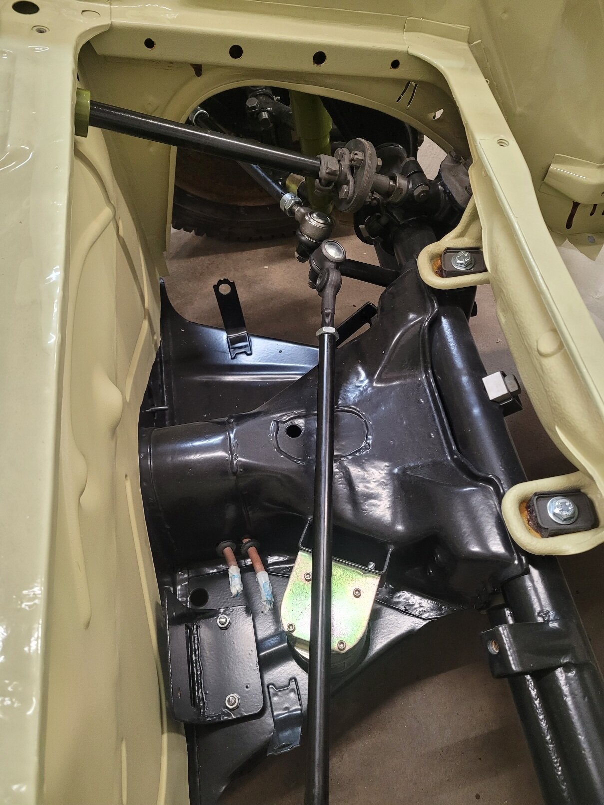 Sain asennettua rattiputken ja akselin paikalleen tiivisteiden kanssa. Sitte noi raidetangot paikalleen niin pääsee siirtelemään helpommin ku renkaat kääntyy. Vaihdetkeppi kans mutta kumes tulee jälkitoimituksena. Liitinkappaletta ja kansi päälle. Sit lakkasin vielä nää alumiinilämiskät ettei ihan heti hapetu ja mee huonoksi.