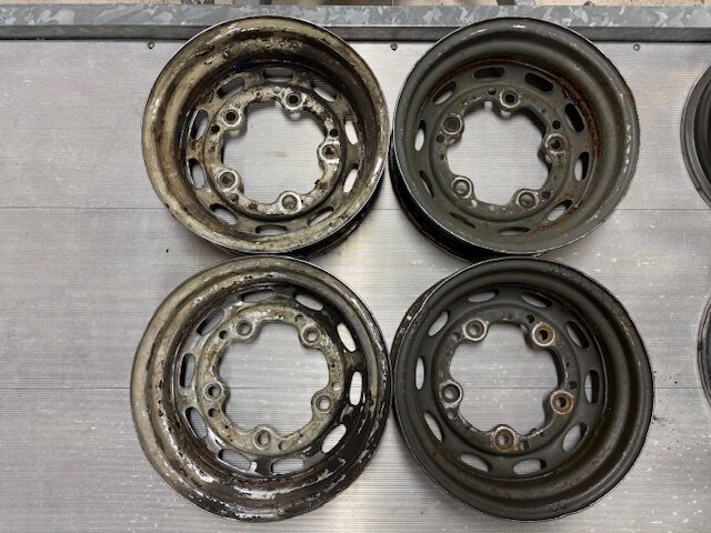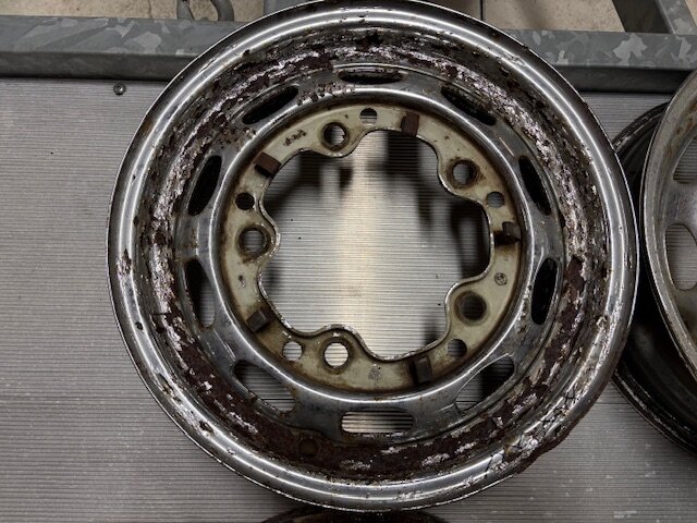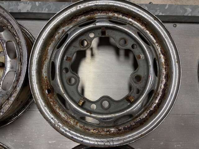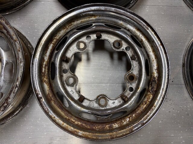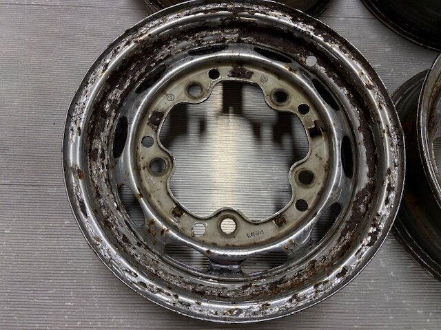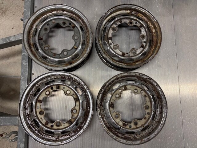 2. 4 kpl projektikuntoiset aidot saksalaiset Porsche 356 4,5x15 et 25, 5x205 jaolla olevat vanteet -2 kpl Kronprintz (KPZ), 4/-61, 11/-62 -2 kpl Lemmerz, 10/-60 ja ?/-64 Sopivuus: -porsche 356 B -63 asti -VW kupla yms volkkareita joissa "iso viisi" 5x205 jako Kaikissa vanteissa on joku pieni vaurio/klommo vanteen kehässä ja siksi tämä hinta, alkuperäisiä ei ole helppo löytää enää, oiottavaksi tai ulkokehän vaihtoon vaikka samalla leveämmäksi, keskiöt kunnossa. Perus ruosteet mutta ei mitään läpiruosteisia metsälöytöjä, olleet kromattuja mutta hiekkapuhalluksella lähtee ruosteet ja irtokromit maalauskuntoon 400 € Kirkkonummella (länsi Vantaalla arkisin sopimuksen mukaan) nollaneljäsataa 608 383 dennis.lindholm(ät)kolumbus.fi YV T. Dennis