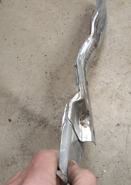 Vasemman puolen puskurin kiinnitys peltiä sovitellessa havahduin siihen että eihän näissä tarvikepelleissä ole tehty tuota väistöä venttiilikopalle helpottamaan koneen asennusta. Pakkohan siihen oli vähän jotain mutkaa saatava joten palasiksi vaan. Oikealle sama juttu, siellä vaan pelti on jo hitsattu koriin kiinni...