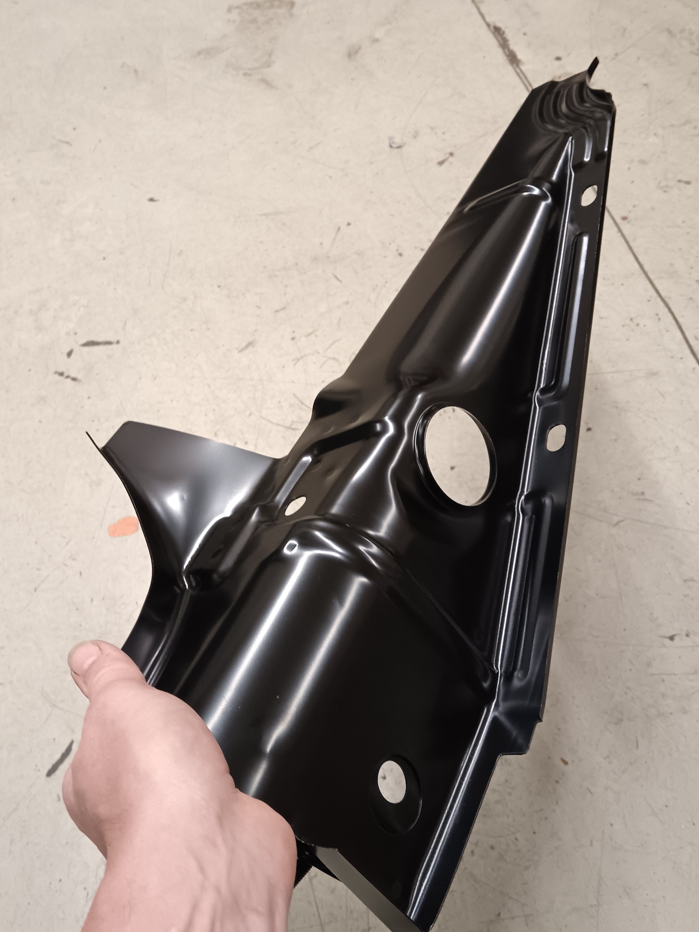 24. Eilen ehdin pikkasen taas jatkaa tän kimpussa. Toisen lokarin viimeiset muodonmuutokset nyt aloitettu. Etupellin "backdating" täytepalatkin nyt leikattuna. Sekä testi muovata kylkilistojen päät pre-49 lisävaruste listojen näköiseksi.