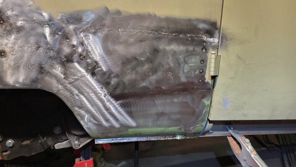 21. Vasen puoli oli ihan paska. Sisäpuolelta löytyi puskurinkiinnikken alla "siilipaikkaus" kun joku joskus oli yrittänyt paikata reikiä äänitorven kiinnikkeen alla... Laikkasin sen kohdan kokonaan pois säästäen vielä muotoja jonkin verran jotta saan sovitettua uutta peltiä suht kohdalleen.. Eiköshän tämä lopulta tule parempi kuin ennen...