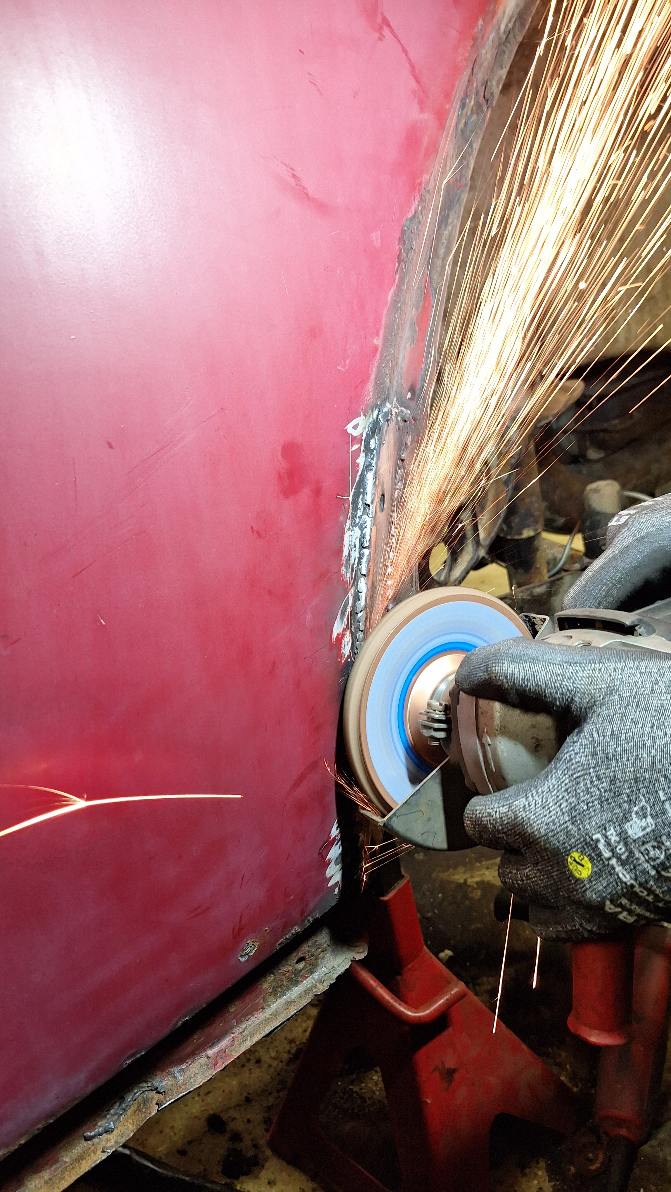 No niin A-pilarien juuret, kynnysmattojen listat ja kuskin takalokdun kiinnitys pelti ehjättiin varsin notkeasti.