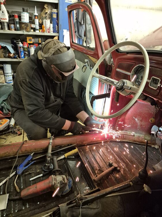 Alkaa olla sen verran paljon jo tehty tuon oman juniksen kanssa, että pitänee laittaa tänne historiikki kaikesta mitä on tehty ja tehdään. Jos vaikka dementia iskee niin on jotain mistä katsoa muistin tueksi.. Tarina alkaa vuoden 2019 syksystä ja olin jo jonkin aikaa haaveillut palliksesta reissukäyttöön kun alkoi kuplalla ja teltalla reissaaminen kyllästyttää. Asia lähtikin etenemään vauhdilla kun tarjoutui mahdollisuus vaihtokaupoilla saada kaverilta moottorivikainen -65 junis. Auto ei tyylillisesti ja teknisiltä ratkaisuiltaan ollut ihan oman mielen mukainen, mutta pikkuhiljaa sitä on rakenneltu enemmän omaan makuun. Edellisen omistajan toimesta auto oli koriltaan hyvinkin huolellisesti läpikäyty, pitkälti kunnostus oli tehty vieraalla teetettynä, joten joitain kohtia oli jouduttu budjettimielessä tekemään edullisemmalla tavalla. Tämä oli siis lähtötilanne auton kanssa edellisellä omistajalla: Auto käytiin siis kokonaan läpi, ja parasta tässä rakentelun kannalta onkin se, että mitään mätähommia ei ole minun toimesta tarvinnut tehdä: Autohan sitten saapui trailerilla syyskuussa 2019 ja syksyn aikana ei tehty oikeastaan mitään muuta kuin otettiin rikkinäinen 1300 kone alas: Moottoririkon syy selvisi ja auto hinattiin navetan vintille odottamaan kevättä: